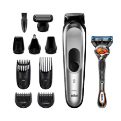 •10-in-1 trimmer kit for beard, face, hair, body, ear and nose trimming, including Gillette Fusion5 ProGlide razor for clean shaving